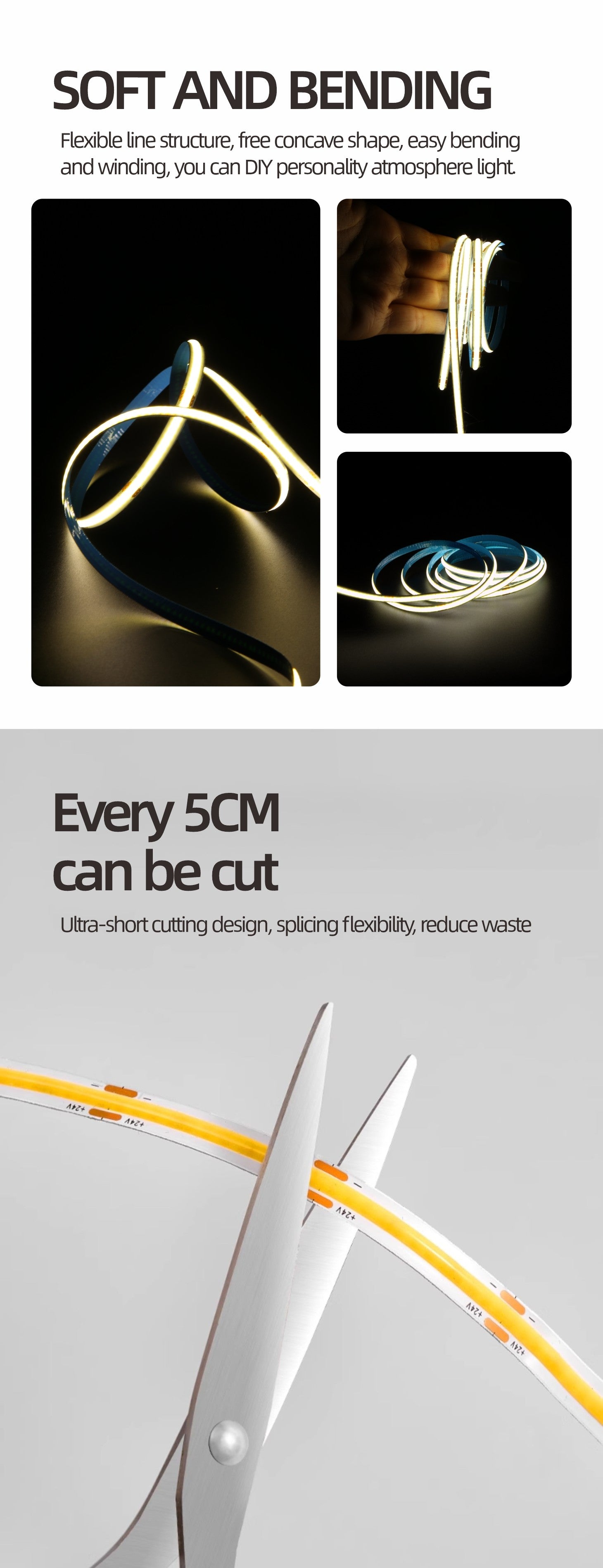 Experience the VG-24V-COB-480F8-IP20 LED strip, where sophisticated design meets exceptional performance. This premium lighting solution bathes your space in a warm, welcoming glow that transforms any room into a sanctuary of comfort. Operating at DC24V with a remarkable 720 lumens output and high CRI of ≥90, it renders colors with stunning accuracy while consuming just 8W per meter—perfect for eco-conscious homes. The flexible silica gel construction and compact 5x5mm profile adapt seamlessly to curved surfaces, corners, and architectural features. With its generous 180° beam angle, light spreads naturally throughout your space, creating layers of ambient warmth. Whether you're illuminating bedroom headboards, kitchen alcoves, or living room accent walls, this versatile strip delivers the cozy, inviting atmosphere you've been seeking. Installation is straightforward, and the durable design ensures years of reliable, beautiful illumination that makes every moment feel special.