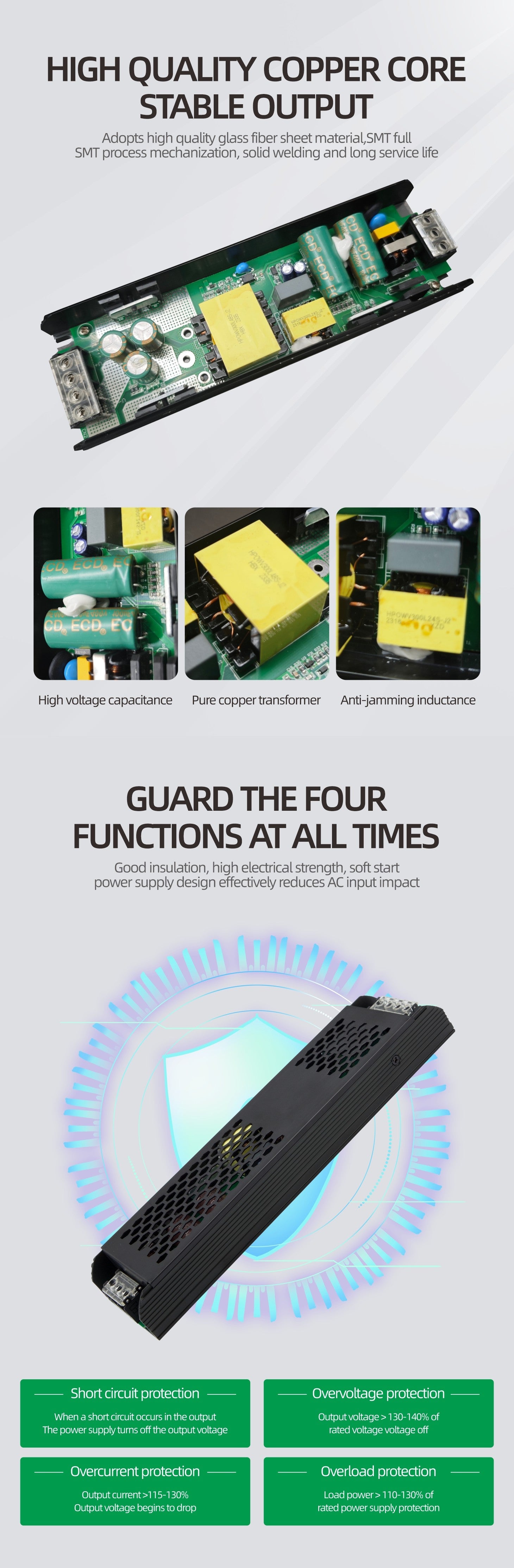 The VG-HY09-400W-48V is a robust power conversion solution designed to bring reliable energy to your setup with a welcoming, dependable presence. Operating seamlessly from standard AC220-240V 50/60Hz mains, this unit transforms input power into a steady 48V 8A output, delivering a consistent 400W of performance you can count on. With an impressive power factor exceeding 0.9, it operates with genuine efficiency that feels like a trusted companion in your electrical infrastructure. The aluminum body, measuring a compact 245x64x29mm, combines durability with thoughtful engineering—built to last while fitting naturally into your space. Whether powering industrial equipment or specialized applications, this converter brings together quality construction and reliable operation in one harmonious package.